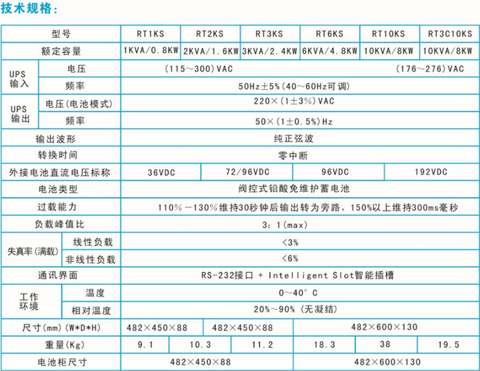 基本特点:机架式RT型高频在线式UPS1-10KVA,采用机架式设计,能够为负载提供更加的电源环境,表现在稳压输出范围、频率范围、输入杂讯的滤除,以及市电模式与电池模式之间零转换时间等诸方面。机架式RT型以创新的软件程式控制方式,不仅体积缩小,更能使故障率大为降低,有效提高使用电源的安全性与可靠性。适合应用于各种精密仪器系统、网络系统,以及重要的、或是对电力环境要求苛刻的设备。